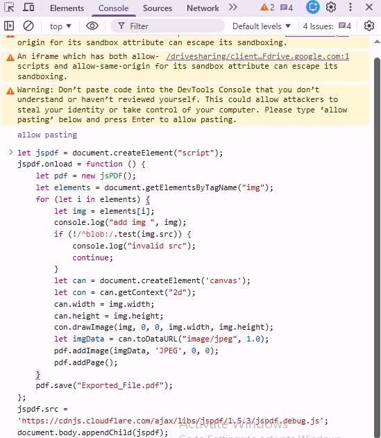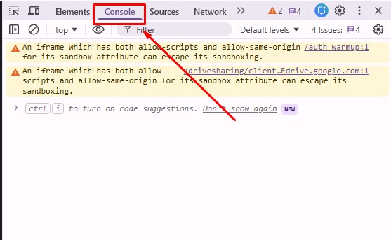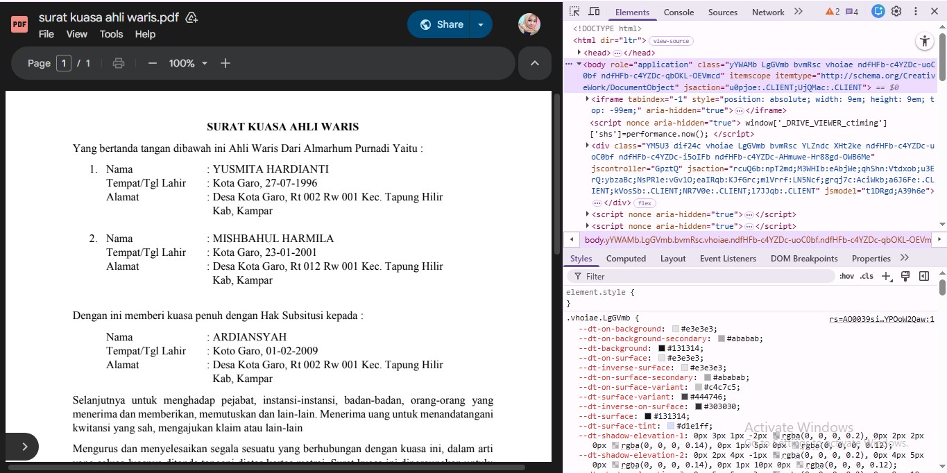 1. Buka file dokumen google drive yang akan didownload, kemudian tekan tombol pada keyboard CTRL+SHIFT+J sehingga membuka halaman inspect element